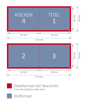 Liefern Sie bitte die Vorder- und Rückseite getrennt an. Vermeiden Sie Passer- und Schnittmarken. Alle Schriften müssen in Kurven (Pfade!) gewandelt sein.
