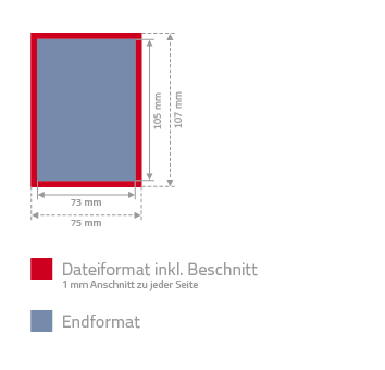 Liefern Sie bitte die Vorder- und Rückseite getrennt an. Vermeiden Sie Passer- und Schnittmarken. Alle Schriften müssen in Kurven (Pfade!) gewandelt sein.